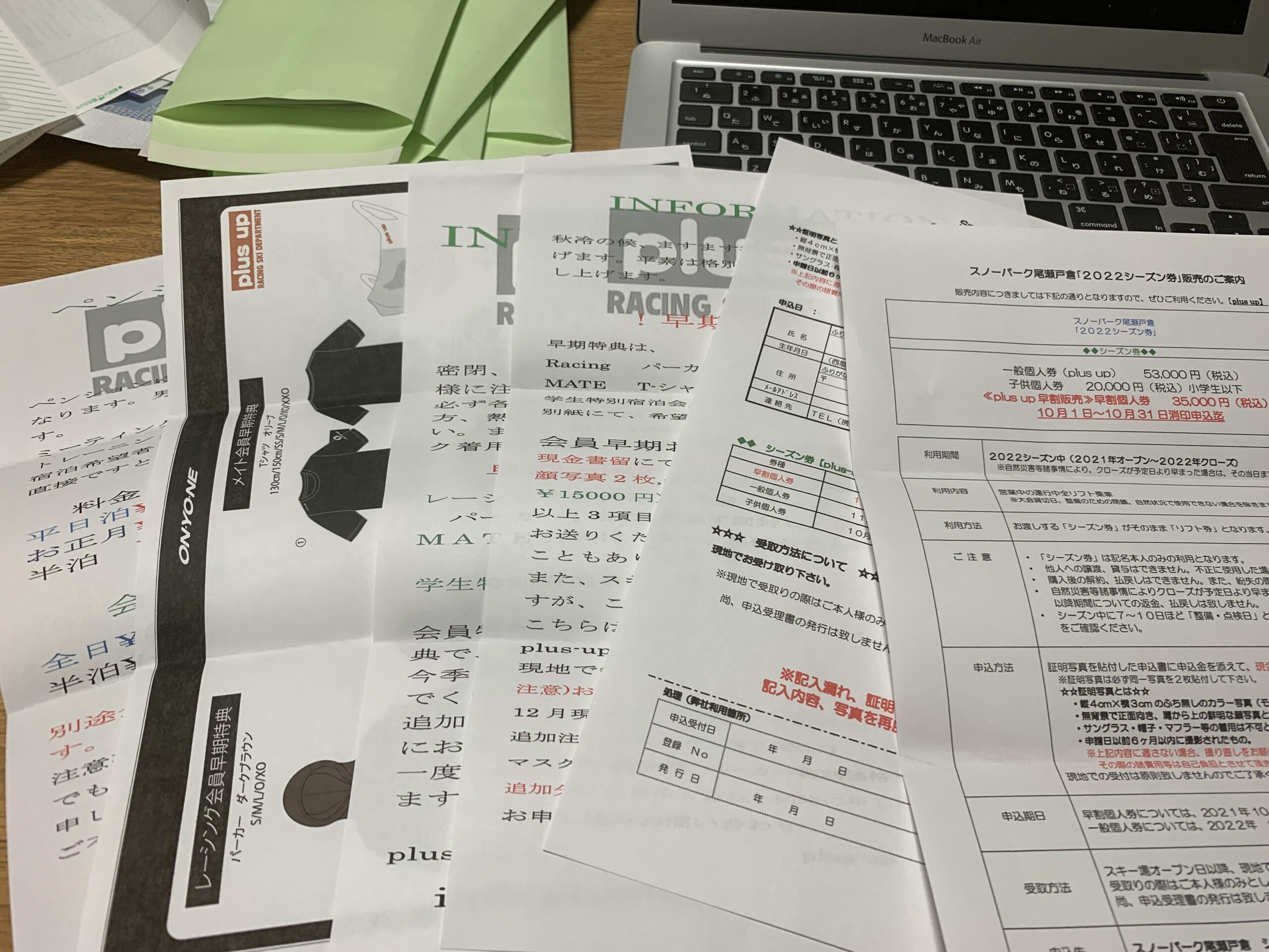 本日、スキー場からシーズンパスの資料が届きました。DM作業も進め、あとはパンフレット待ちになりました。申し訳ございません。