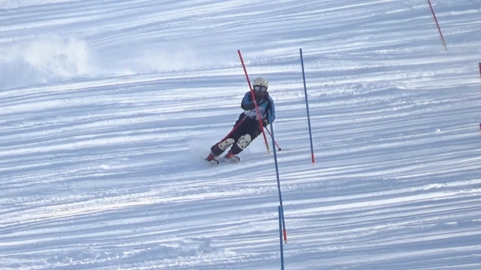 本日は昨日が赤点だったコースが最高点を!かもしかコースでも非常に締まった状態でいいトレーニングができました。初めに2本程度でコース整備を考えていましたが、今日はリフトも空いていたので、4本後からのコース整備にしても問題ないくらいの状態でした。午後のダイナミックは大会後とは思えない程に状態が良く、SLも何の問題もなくトレーニング終了でした。本日は参加選手の滑走量がちょっと多すぎたかなぁ?