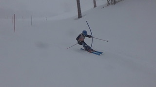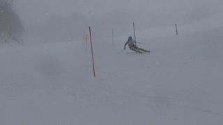 朝一は最高のではなく風がすごかったでした。GSで本数を重ねるごとに下地の氷は磨きがかかり、苦戦する選手が多くそして雪で視界不良にも、それでもVTR5本は晴れてる間に撮ることができました。GSはコース整備なしで終了。午後のSLは今季1番の大雪にコースのアイスバーンは良いのですが、外にみるみるたまっていく感じでのトレーニングになりました。