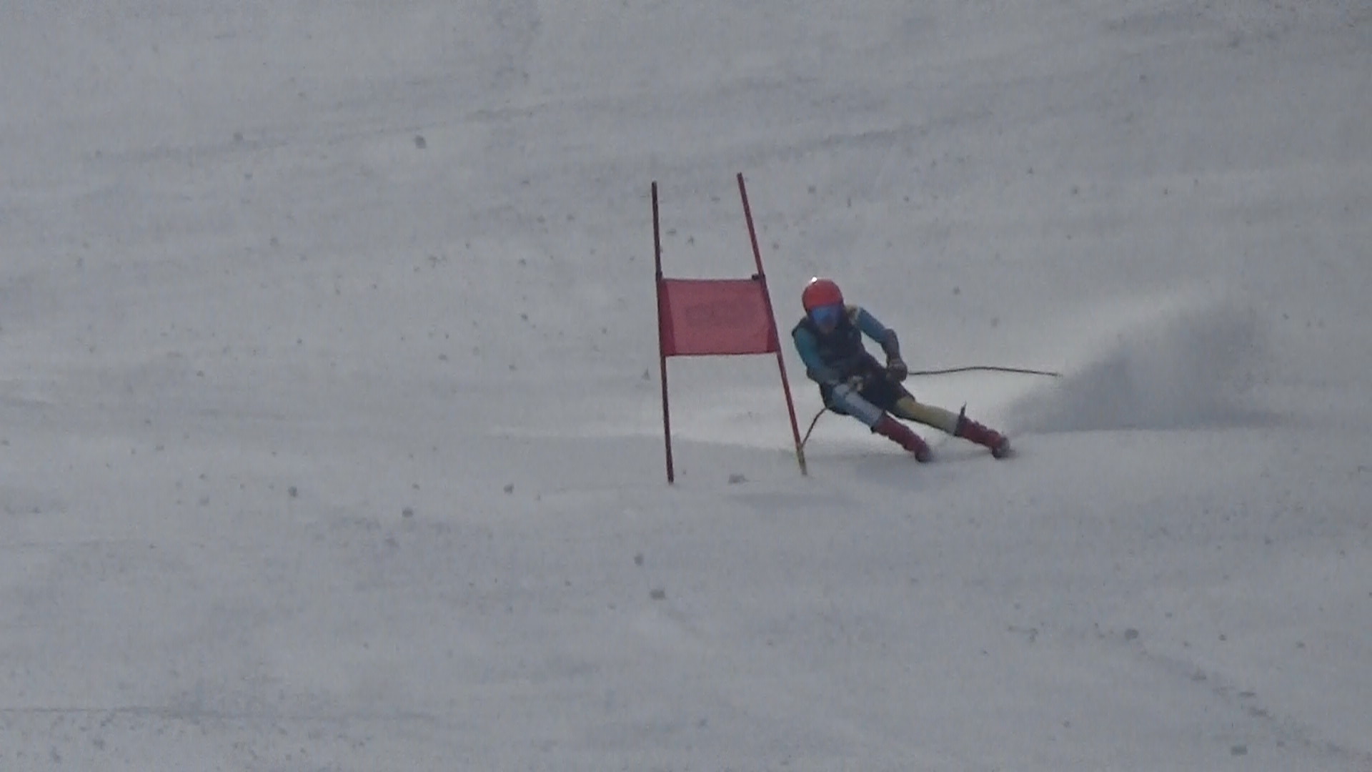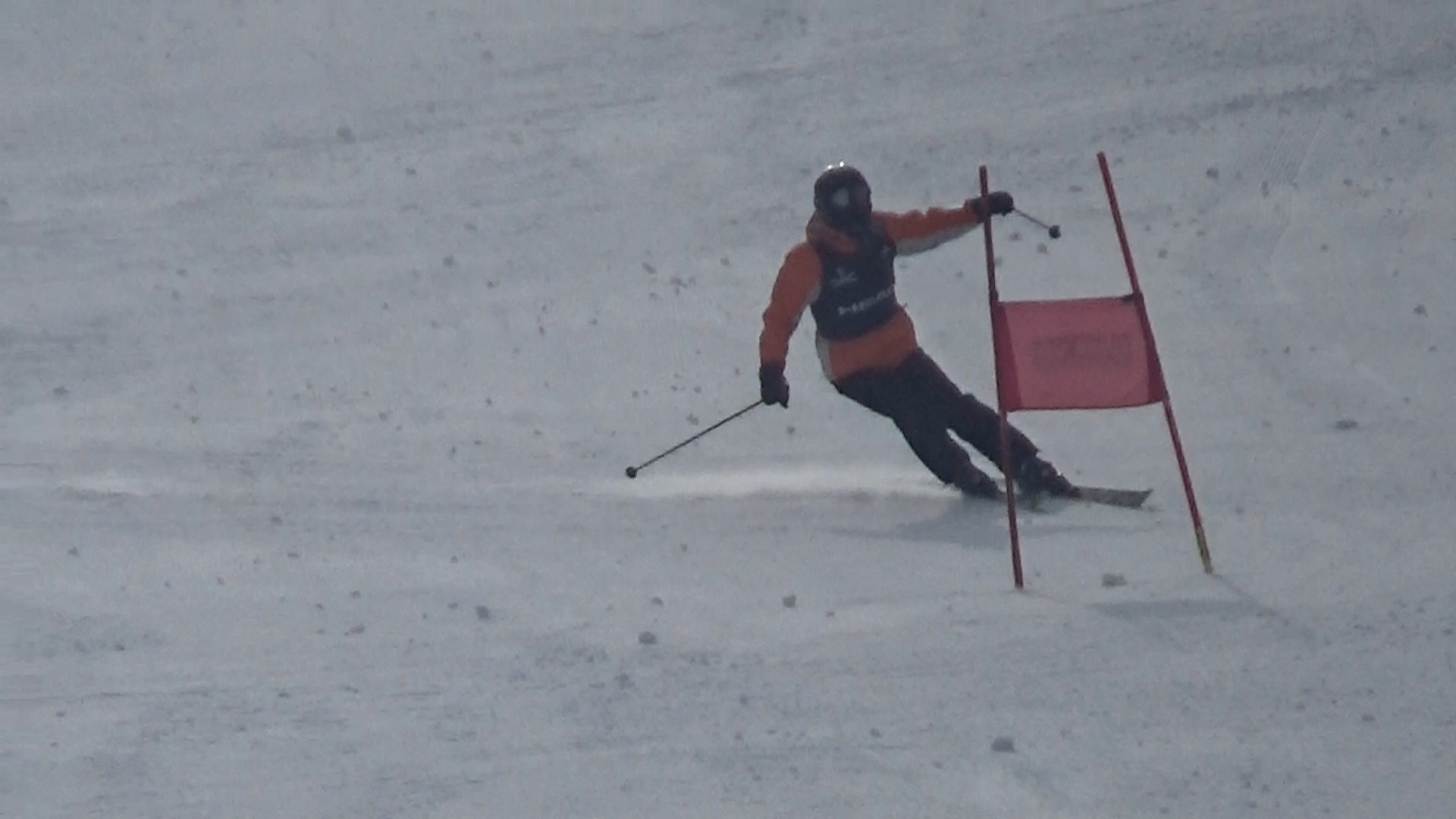午前中のGS時はほとんど問題なくトレーニングできています。表面が溶け横に払えば、氷が出てくる感じです。午後のSLの頃には尾根部分はシャバシャバ状態でSETされている部分もかなり溶けコース横にたまりますが、マウンド近辺からはほとんど問題なく氷が出てくる感じでいます。また、今後ご参加の選手にご連絡です。急斜面部分はかなり雪がなくなっております。スタートまでの移動の際には十分にご注意して移動ください。また急斜面部分の移動は斜滑降もしくは横滑りにてお願いします。
