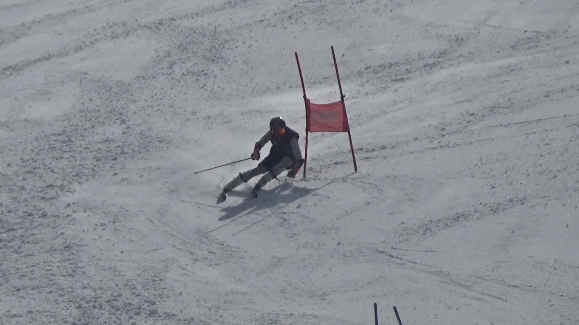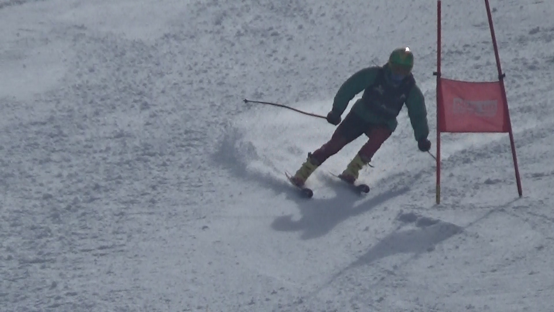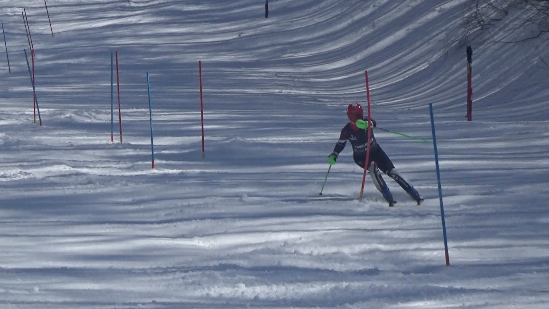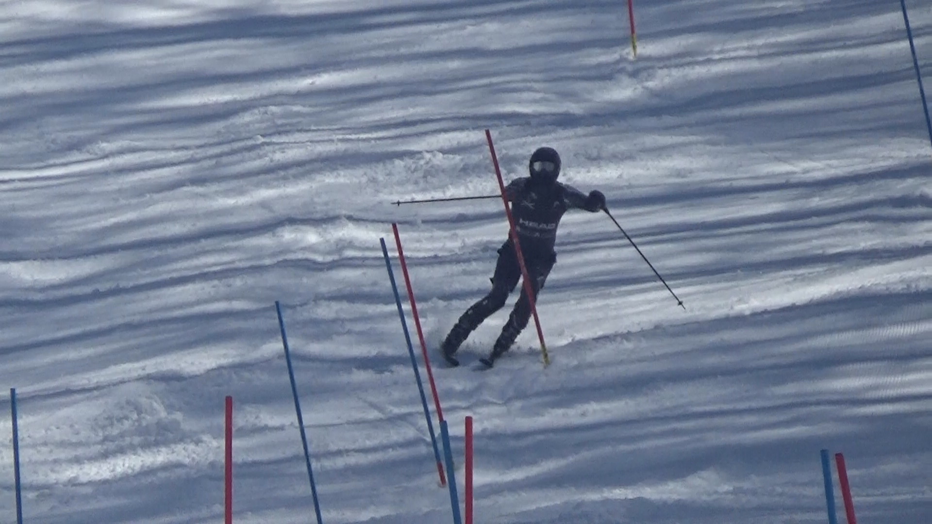完全に春、東京は桜開花!風は冷たく日陰は寒い感じがするんですが、雪は完全に悪くなってきています。GS時では表面は冷え切らずザクザク3本後のコース整備で氷が出てくる感じでした。午後のSLも同様ですが、、、尾根部分を含めスタート位置までの移動も大変に、、、参加選手は十分ご注意ください。疲れますよ!