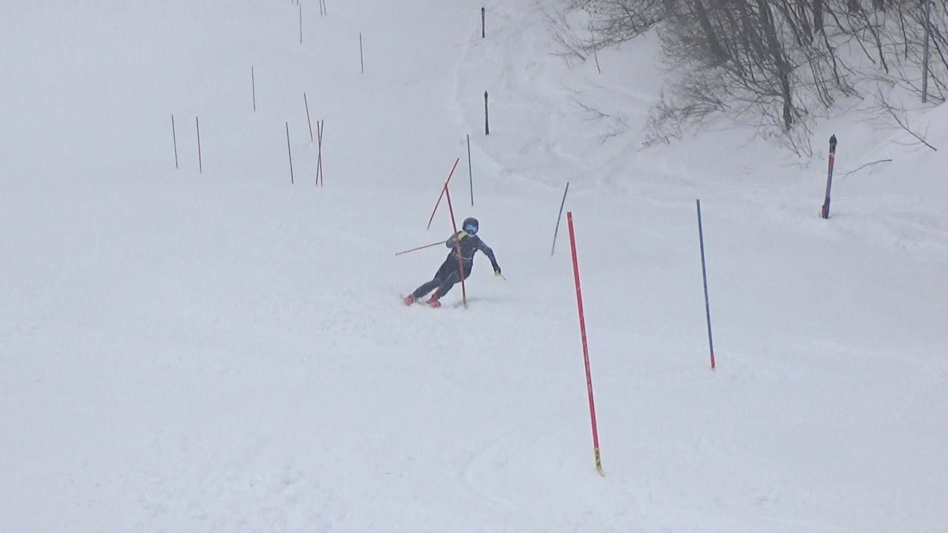 コース状況はまだ締まりきらないですが、滑っていくうちに天然雪の掘れにコース整備をまめに行いながらのトレーニングになりました。尾根から急斜面へのGSで体にかかる抵抗感を感じ取れたと思います。うまく雪面抵抗を受け止めながら次のターンに行くといいのですが、選手はかなり急斜面に意識が行き過ぎている感じです。明日も頑張ってください。