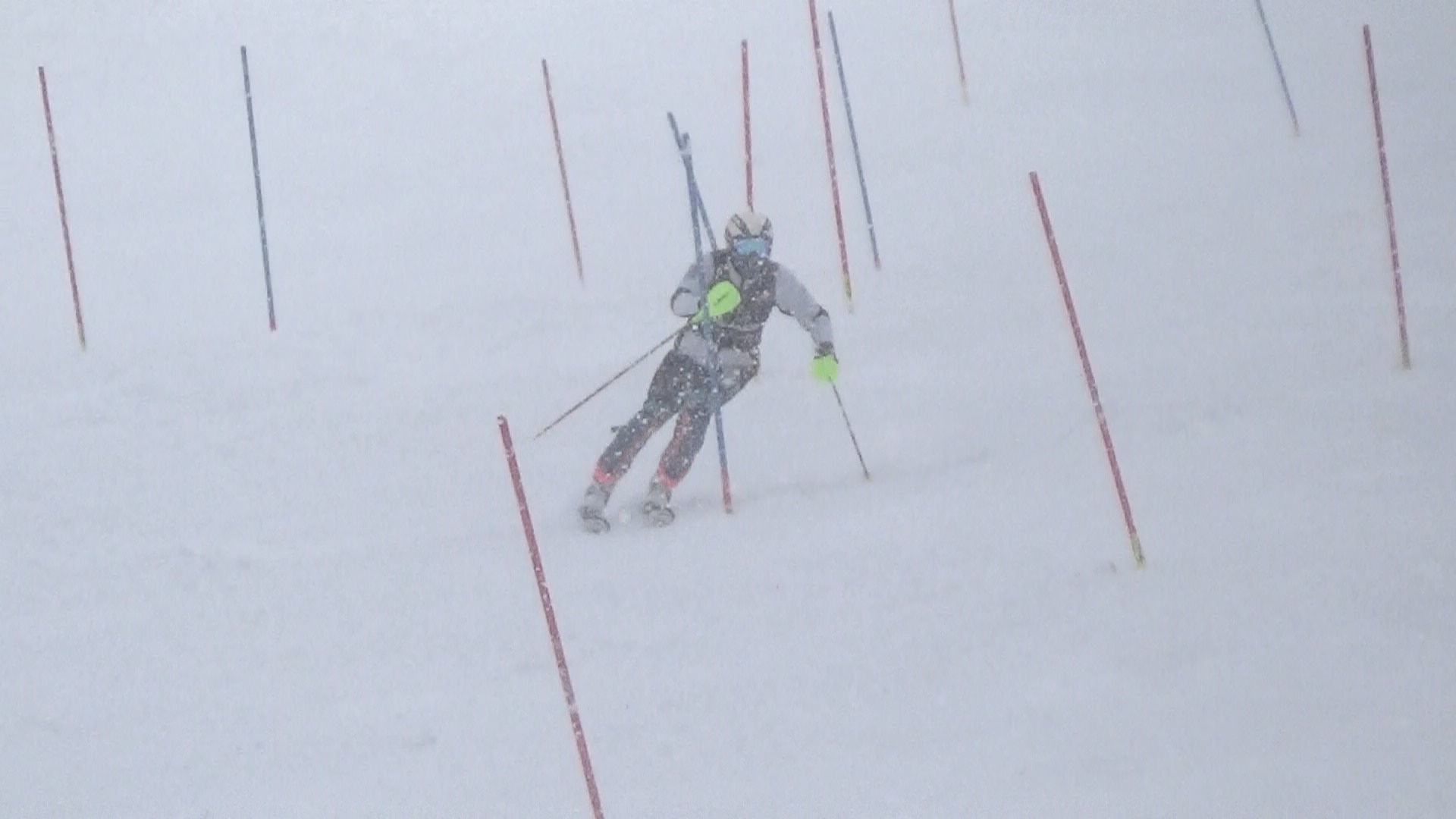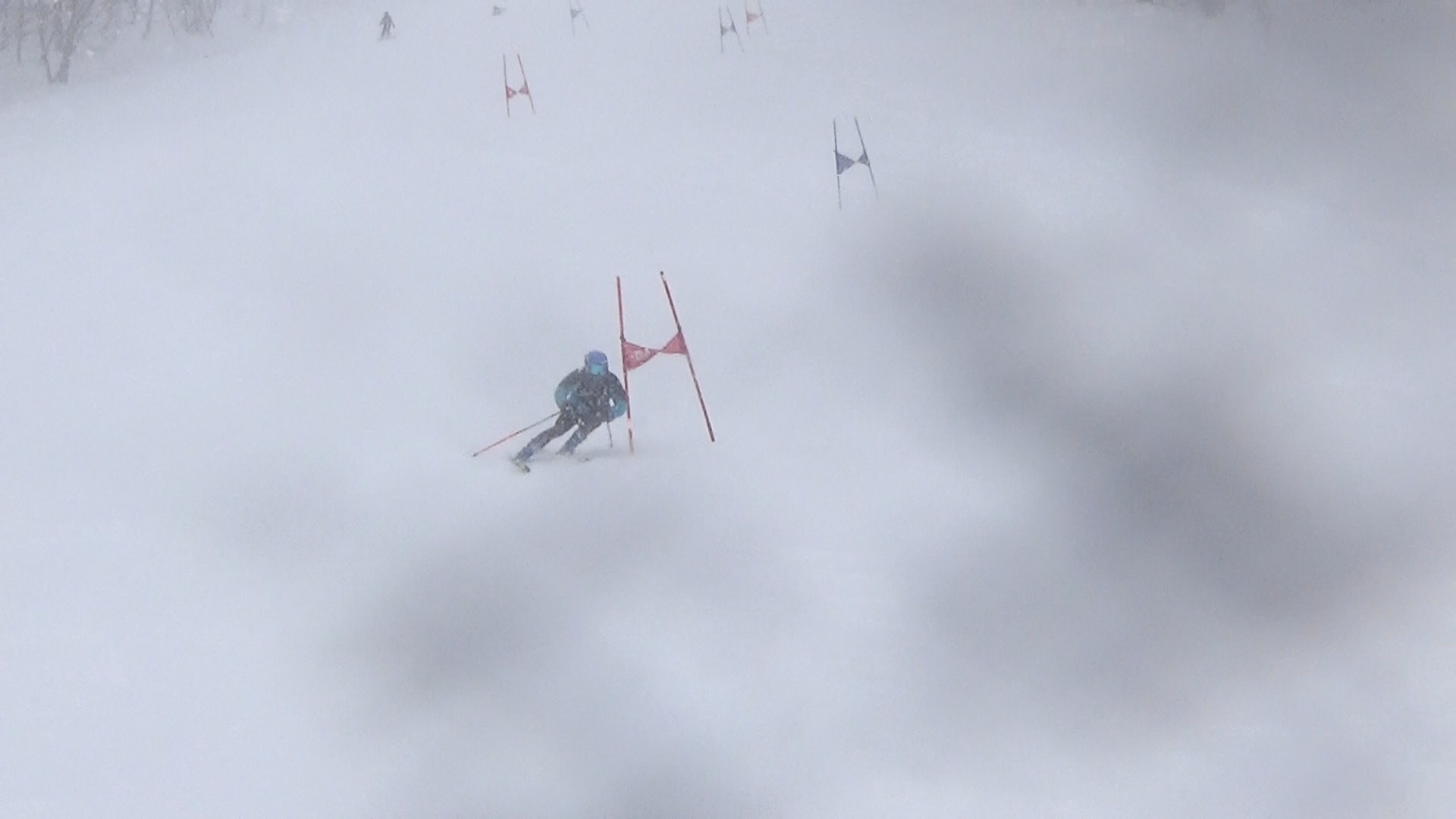 午前中は視界が悪いくらいに雪と風、選手も2名頑張りました。コース整備をしなくとも、、、滑りすぎた感じでした。午後のSL時では雪はほとんど降らず、風もおさまってきた感じでしたが、明後日からボード選手達の滑走ラインでスタートまでも結構疲れがある様で、コース整備は1回のみでかなり滑り込んで終了しました。