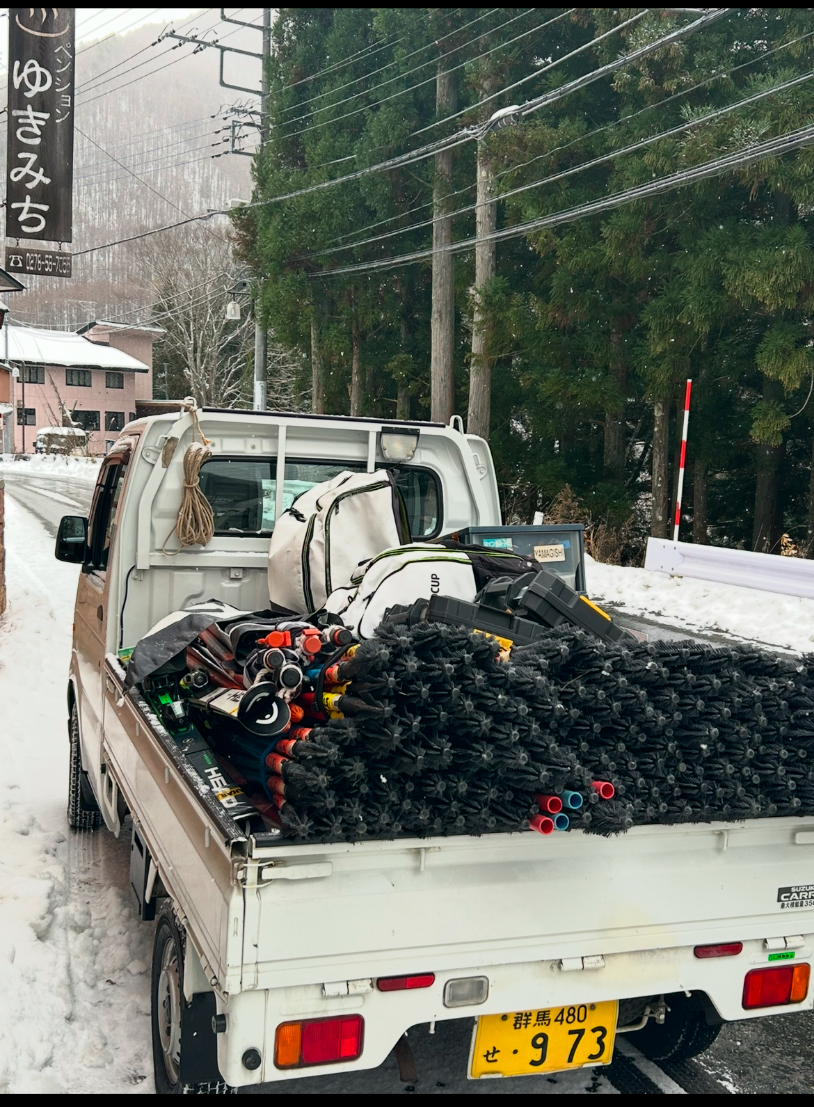 スキー場に備品を上げてきました。完全にゲレンデができてしまうとパトロールまで運ぶのに苦労しますので、車で上がれる時に!上げてきました。