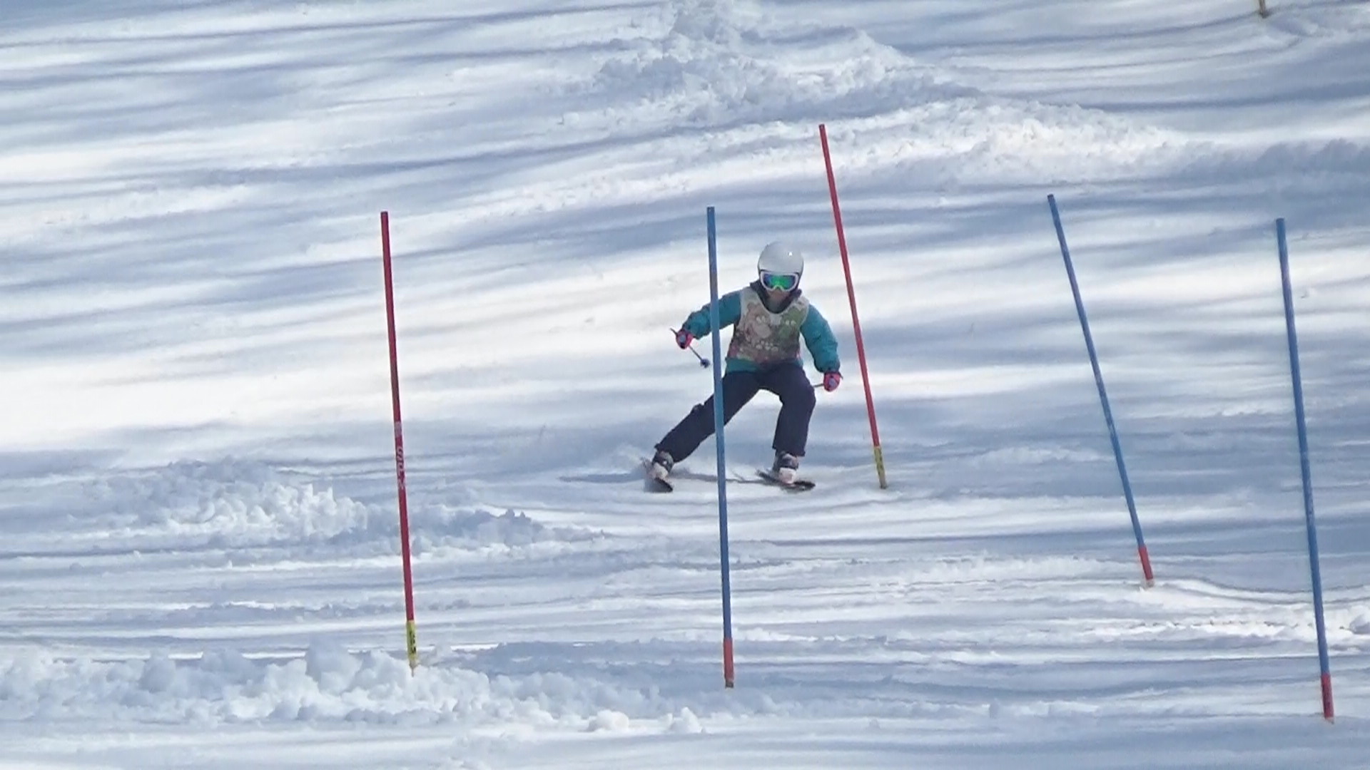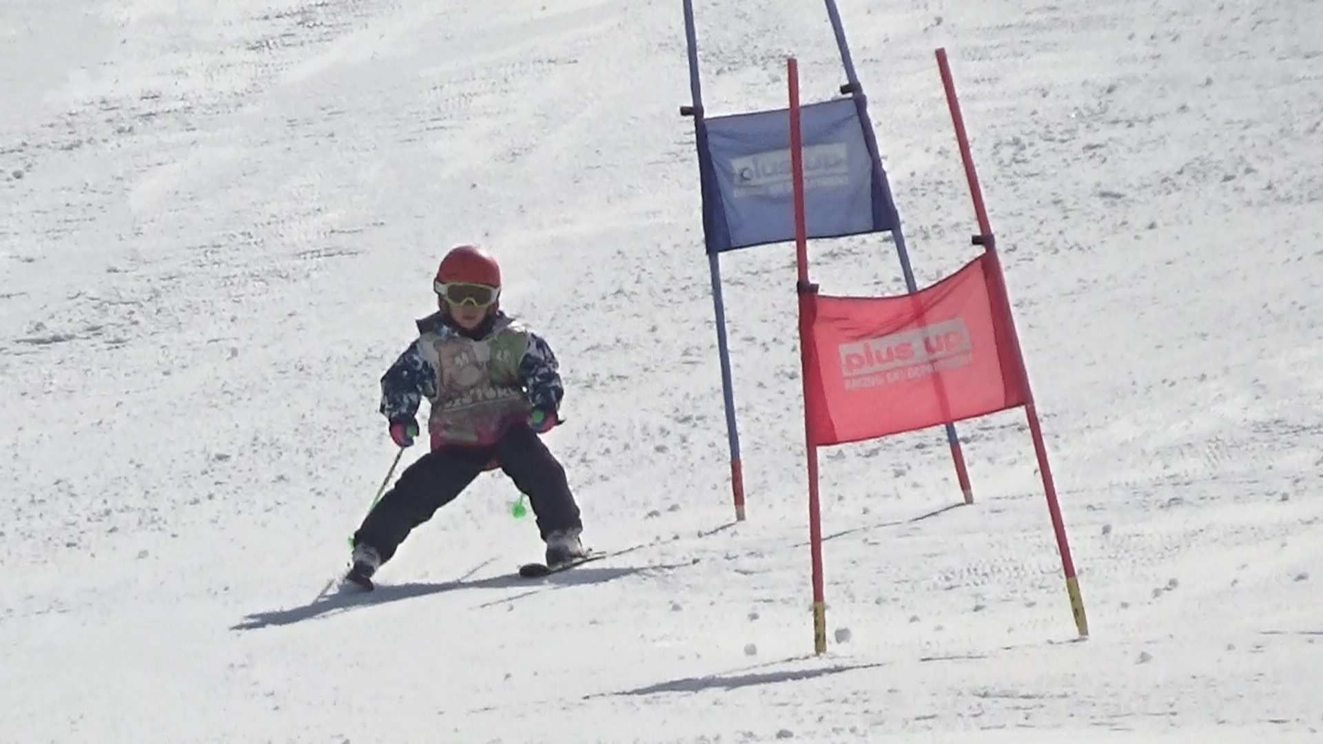 午後は移動から雪はシャバシャバで止まるところもあるくらいの状況になってしまいますが、トレーニングコースは表面が掘れて、硬い氷が出てくる感じです。コース整備で削れた山の部分を外に押し出せば、見た目の恐怖心もなくなり、子供もすんなり滑れる感じです。