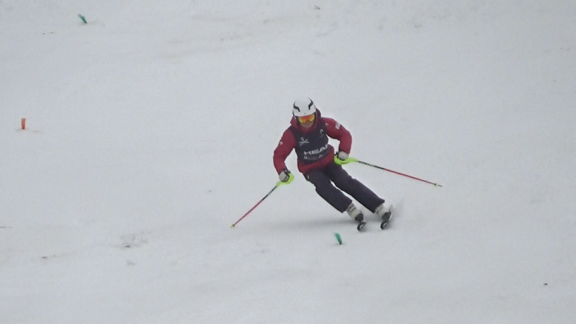 午前中は硬さがあり、問題なく?トレーニングできましたが、午後のSL時は2本滑走後にコース整備やコースを少し変更しないと、下の芝が出てくる状態です。