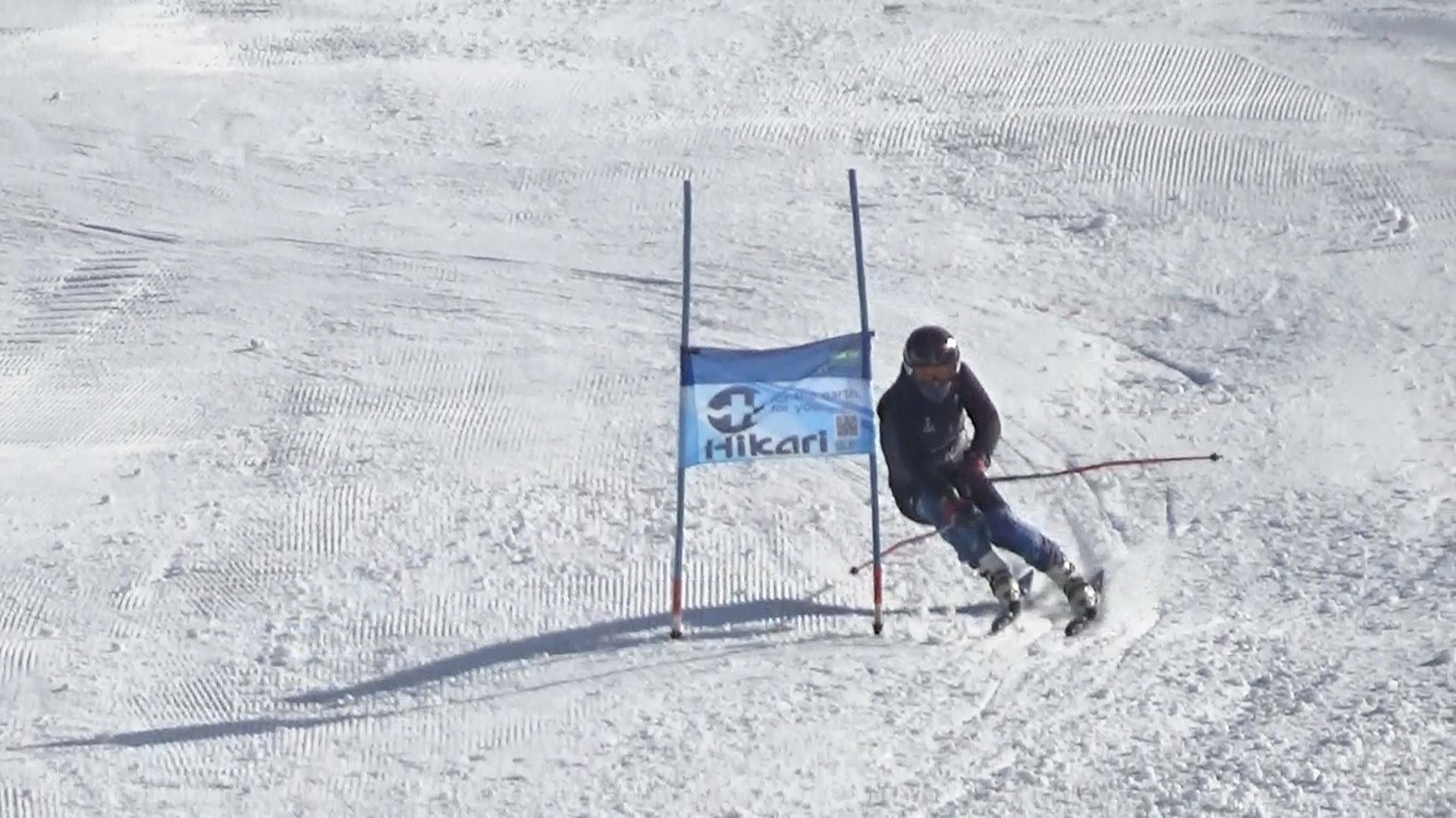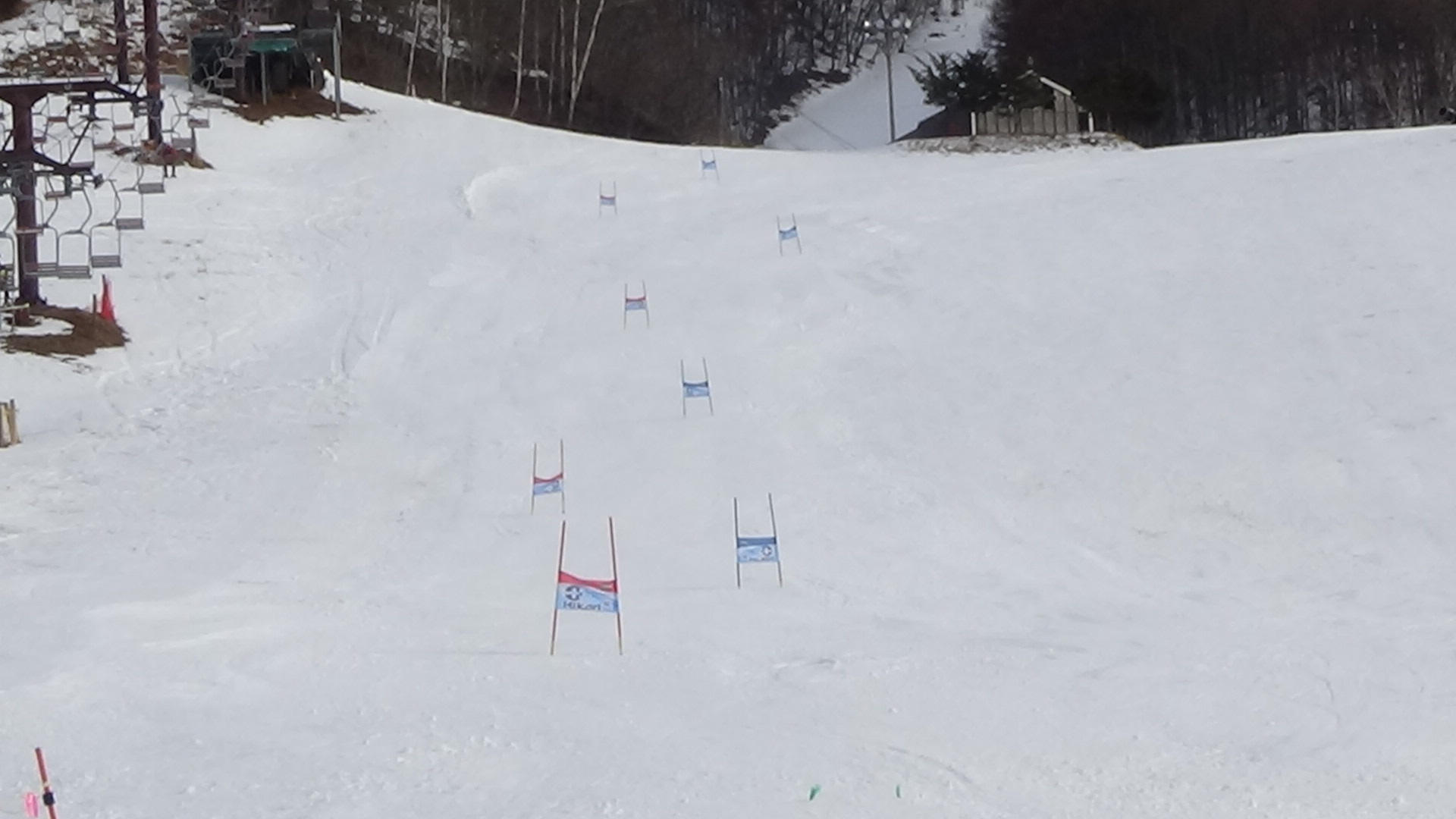 昨晩の冷え込みで降雪機でのコース修復の為、コースは少し改善され、